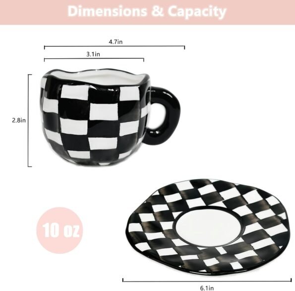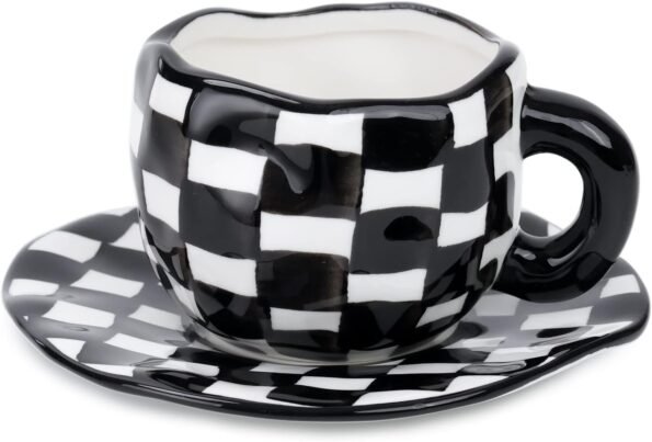 Checkered Mug Ceramic Checker Tea Cup and Saucer Set 10 oz